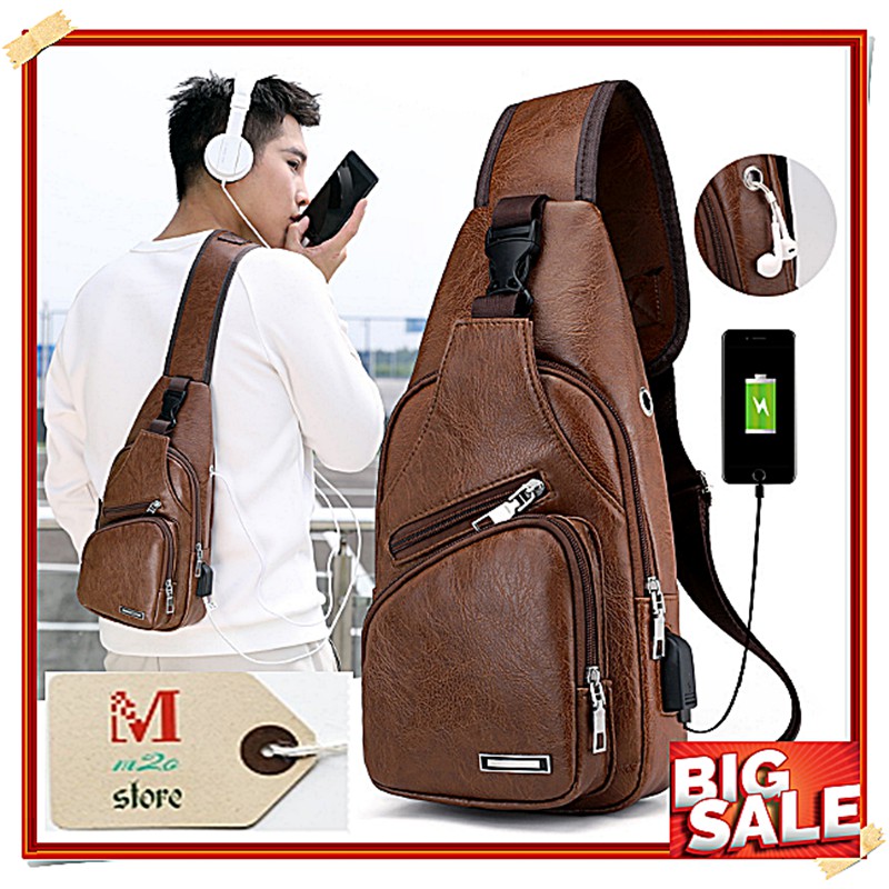 FREESHIP 99K TOÀN QUỐC (Có Video) Túi đeo chéo da nam cao cấp thời trang hàn quốc có cổng sạc USB + lỗ tai nghe Hot 2019